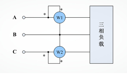 二瓦計(jì)法接線示意圖如下所示(以測(cè)量UabIa,UcbIc為例):