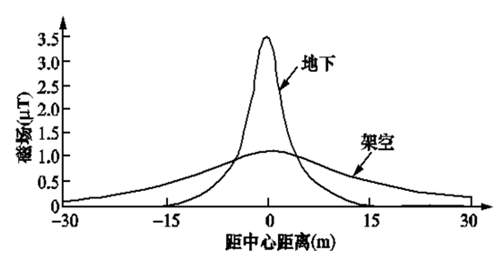 圖3高、中壓地下電纜產(chǎn)生的地面磁場