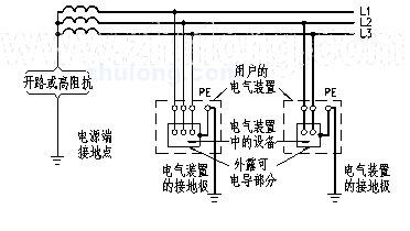 T-電氣裝置的外露可電導(dǎo)部分直接接地,此接地點(diǎn)在電氣上獨(dú)立于電源端的接地點(diǎn);