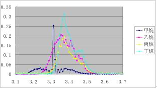 從上表可以看出,煤氣主要成分中CO、O2與背景氣N2的熱導(dǎo)系數(shù)相當(dāng),對(duì)H2的測(cè)量結(jié)果影響不大,但是CO2、CH4對(duì)H2測(cè)量影響明顯。通過(guò)理論分析及實(shí)驗(yàn)表明,如果氣體成分中含有CO2,會(huì)使H2的測(cè)量讀數(shù)偏低;如果氣體成分中含有CH4,會(huì)使H2的測(cè)量讀數(shù)偏高。因此為了得到準(zhǔn)確的H2含量,應(yīng)對(duì)H2濃度進(jìn)行CO2、CH4的濃度校正。此外由于熱導(dǎo)傳感器的基本原理是通過(guò)對(duì)氣體流動(dòng)帶走的熱量進(jìn)行換算,如果采用直接流通式的熱導(dǎo)檢測(cè)池,很難控制氣流,流量大小直接影響H2的讀數(shù),為了得到*的煤氣熱值,煤氣分析儀還必須實(shí)現(xiàn)CH4、CnHm無(wú)干擾測(cè)試。大多數(shù)紅外分析儀僅以CH4為測(cè)試對(duì)象,折合成碳?xì)浠衔锟偭坑?jì)算熱值。煤氣成份中,特別是焦?fàn)t煤氣,除甲烷外,還含有其他碳?xì)浠衔锏瘸煞?。根?jù)紅外吸收原理,如圖1,乙烷等碳?xì)浠衔镌诩淄榈奶卣鞑ㄩL(zhǎng)3.3um左右有明顯吸收干擾。當(dāng)煤氣中其他碳?xì)浠衔锖枯^大時(shí),CH4的測(cè)試值會(huì)明顯偏大,導(dǎo)致熱值測(cè)試不準(zhǔn),其熱值測(cè)試值也無(wú)法保證精度。